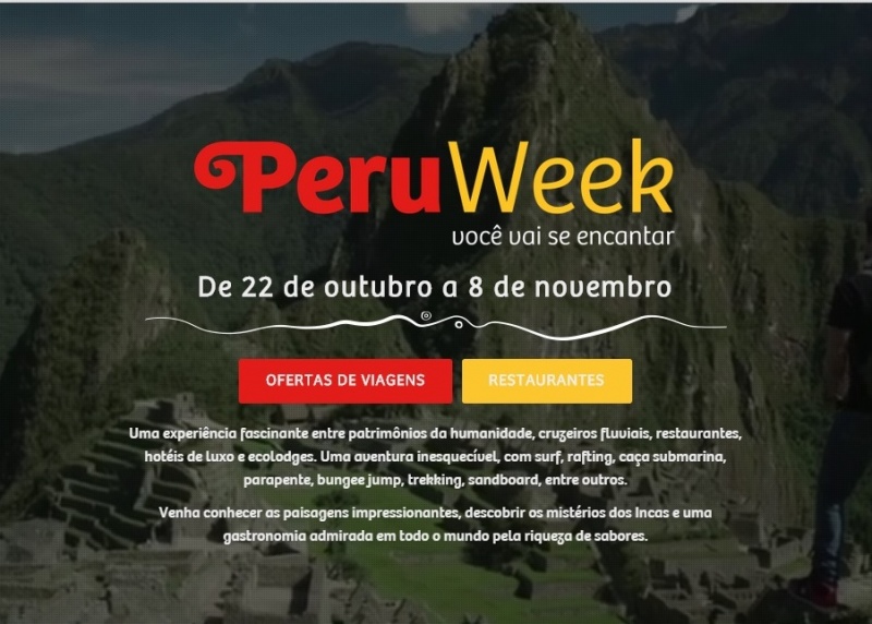 Vale lembrar que, paralela à participação no Festuris 2015, é realizada em todo o país a Peru Week 2015, principal campanha de promoção do turismo e da gastronomia do Peru no mercado brasileiro, até o dia 08 de novembro.